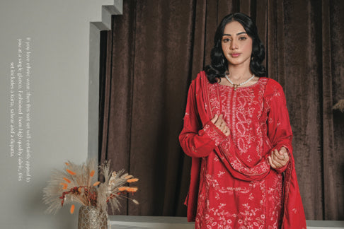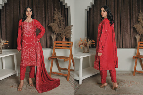 The Mehrma Collection by Fiza Noor is a timeless celebration of elegance and craftsmanship. Featuring premium Staple Karandi fabric, this unstitched 3-piece volume blends traditional artistry with contemporary aesthetics. Each article is designed with rich dyed bases, intricate embroidery, and refined detailing, making it an ideal choice for festive gatherings, formal events, and seasonal wear. With vibrant colors, delicate threadwork, and versatile designs, Mehrma brings luxury and comfort together in one collection.