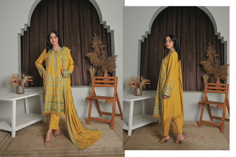 The Mehrma Collection by Fiza Noor is a timeless celebration of elegance and craftsmanship. Featuring premium Staple Karandi fabric, this unstitched 3-piece volume blends traditional artistry with contemporary aesthetics. Each article is designed with rich dyed bases, intricate embroidery, and refined detailing, making it an ideal choice for festive gatherings, formal events, and seasonal wear. With vibrant colors, delicate threadwork, and versatile designs, Mehrma brings luxury and comfort together in one collection.