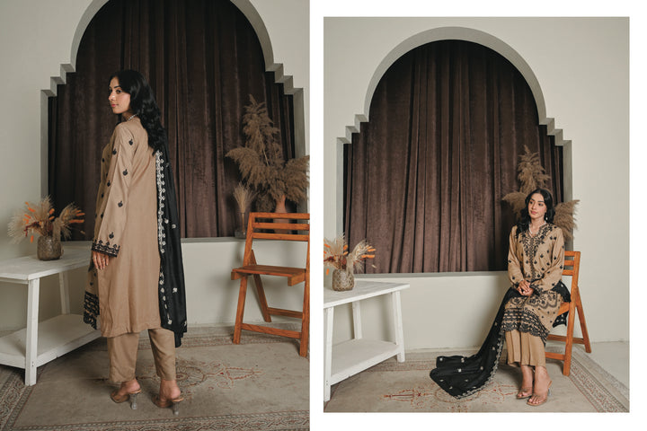 The Mehrma Collection by Fiza Noor is a timeless celebration of elegance and craftsmanship. Featuring premium Staple Karandi fabric, this unstitched 3-piece volume blends traditional artistry with contemporary aesthetics. Each article is designed with rich dyed bases, intricate embroidery, and refined detailing, making it an ideal choice for festive gatherings, formal events, and seasonal wear. With vibrant colors, delicate threadwork, and versatile designs, Mehrma brings luxury and comfort together in one collection.