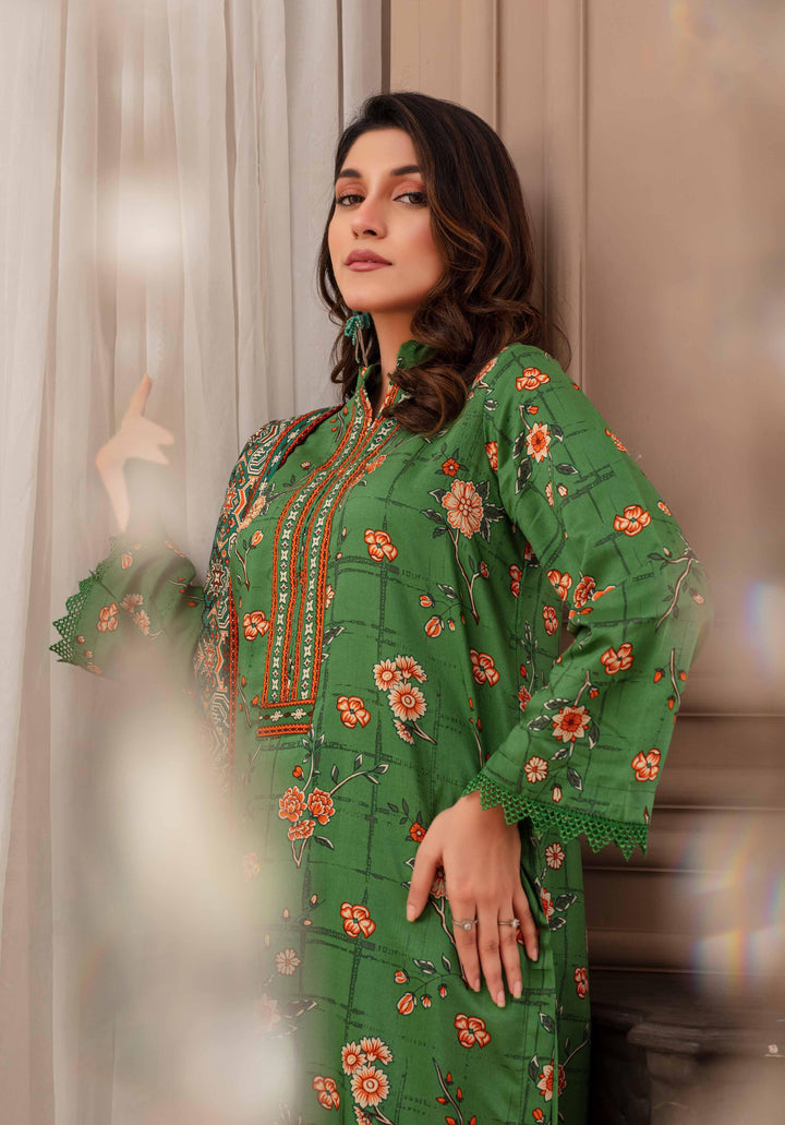 Elevate your wardrobe with this stunning ensemble from Fiza Noor Nayel Vol-01 — a perfect blend of elegance, comfort, and timeless charm. Crafted from premium viscose fabric, this 3-piece suit features a beautifully printed shirt adorned with vibrant floral and geometric motifs in shades of navy blue, mustard, and green, balanced against a subtle grey base. The matching viscose dupatta carries intricate patterns that add depth and grace, while the dyed viscose trouser completes the look with effortless sophistication. Perfect for casual gatherings or semi-formal occasions, this outfit embodies modern femininity with a traditional touch.