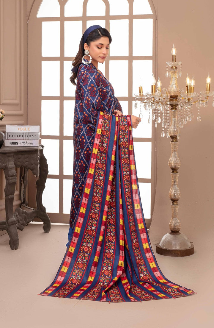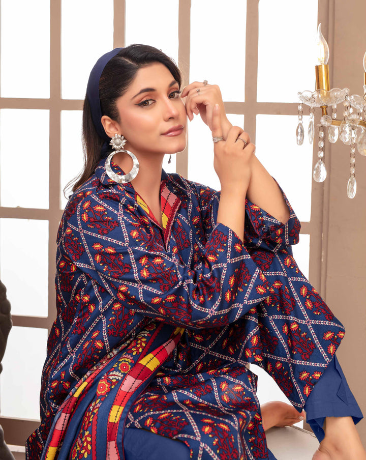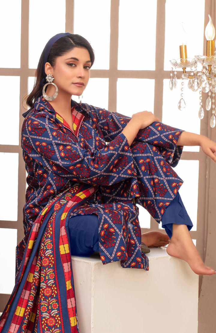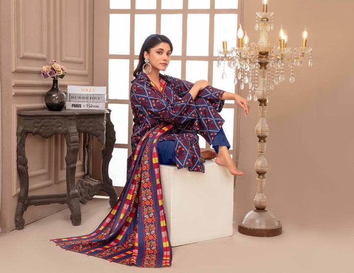 Elevate your wardrobe with this stunning ensemble from Fiza Noor Nayel Vol-01 — a perfect blend of elegance, comfort, and timeless charm. Crafted from premium viscose fabric, this 3-piece suit features a beautifully printed shirt adorned with vibrant floral and geometric motifs in shades of navy blue, mustard, and green, balanced against a subtle grey base. The matching viscose dupatta carries intricate patterns that add depth and grace, while the dyed viscose trouser completes the look with effortless sophistication. Perfect for casual gatherings or semi-formal occasions, this outfit embodies modern femininity with a traditional touch.