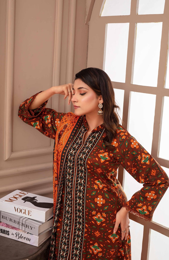 Elevate your wardrobe with this stunning ensemble from Fiza Noor Nayel Vol-01 — a perfect blend of elegance, comfort, and timeless charm. Crafted from premium viscose fabric, this 3-piece suit features a beautifully printed shirt adorned with vibrant floral and geometric motifs in shades of navy blue, mustard, and green, balanced against a subtle grey base. The matching viscose dupatta carries intricate patterns that add depth and grace, while the dyed viscose trouser completes the look with effortless sophistication. Perfect for casual gatherings or semi-formal occasions, this outfit embodies modern femininity with a traditional touch.