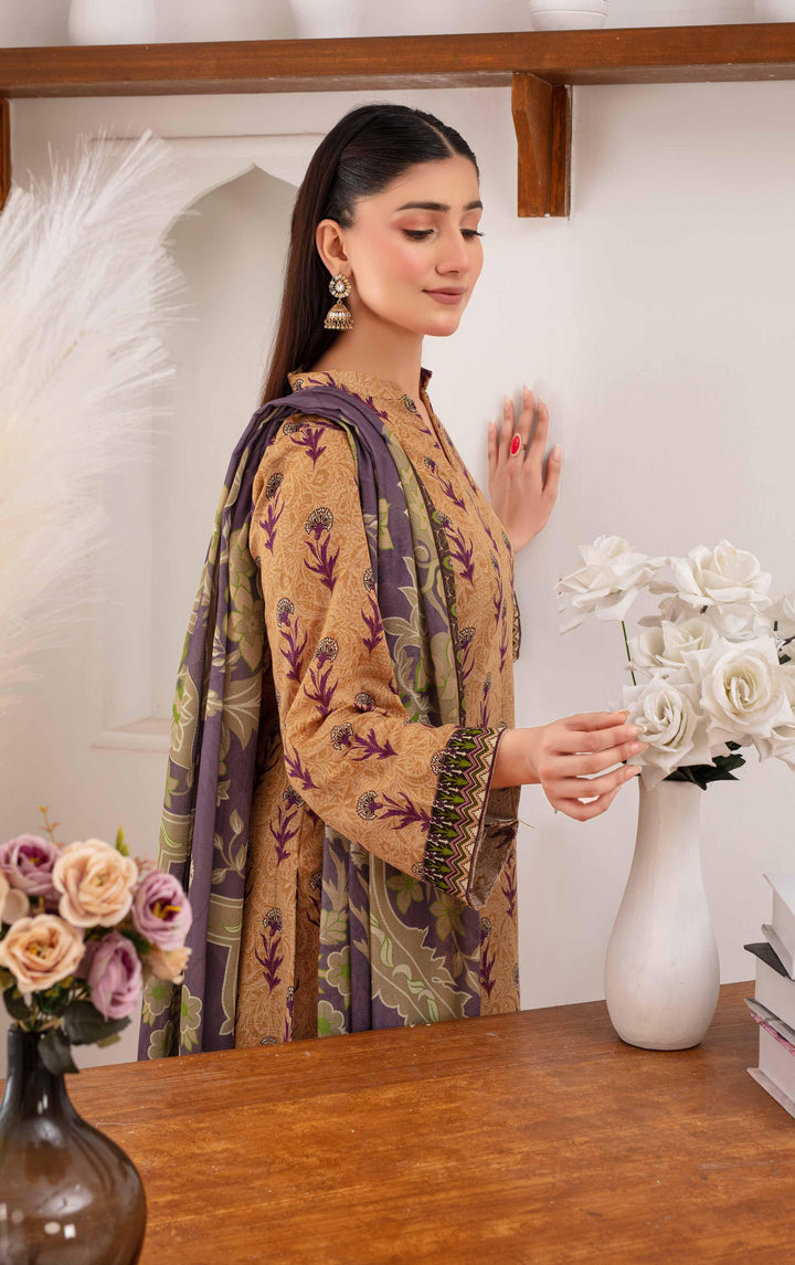 The Mehar Vol-01 by Fiza Noor brings you elegant winter wear designed with comfort and sophistication. This 3-piece suit is crafted from premium khaddar fabric, paired with a warm wool shawl, making it an ideal choice for the winter season. The collection showcases bold prints and rich colors that beautifully blend traditional charm with contemporary style. Perfect for casual gatherings, semi-formal events, or cozy everyday wear, this outfit ensures both style and warmth.