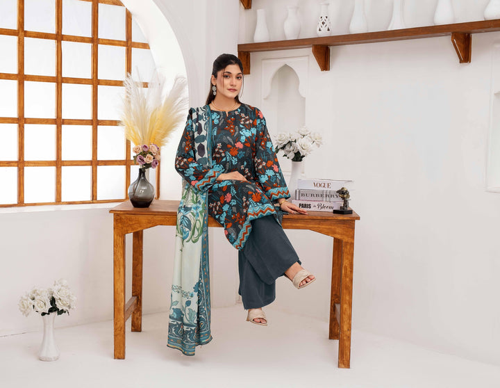The Mehar Vol-01 by Fiza Noor brings you elegant winter wear designed with comfort and sophistication. This 3-piece suit is crafted from premium khaddar fabric, paired with a warm wool shawl, making it an ideal choice for the winter season. The collection showcases bold prints and rich colors that beautifully blend traditional charm with contemporary style. Perfect for casual gatherings, semi-formal events, or cozy everyday wear, this outfit ensures both style and warmth.